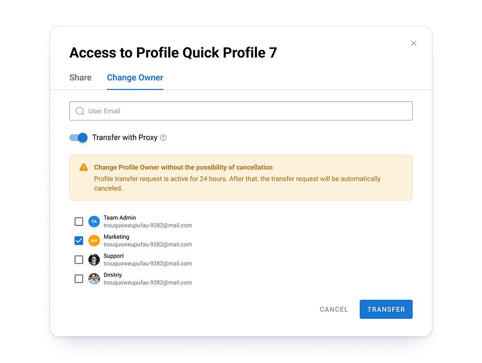 Give access to create, edit, delete, duplicate and transfer profiles